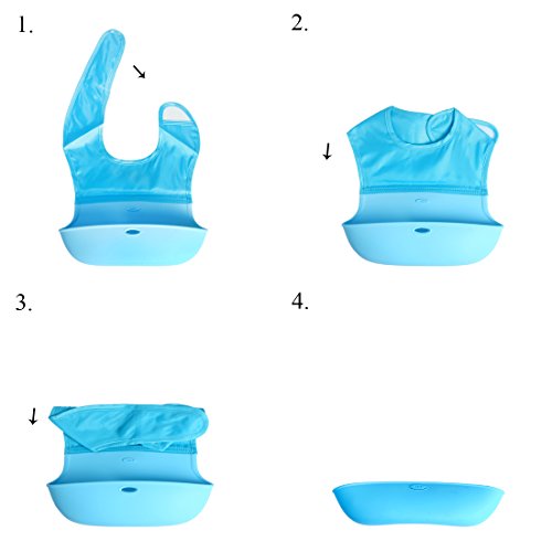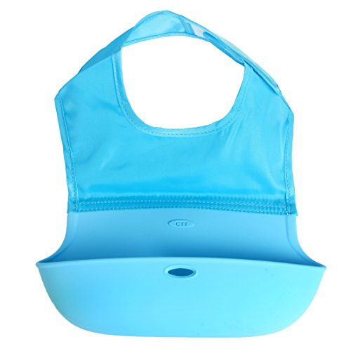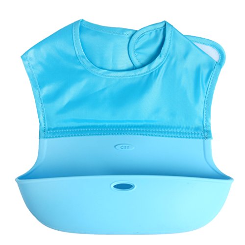 Andux Space ベイビー シリコンビブ 防水 お食事用 4ヵ月~3歳 WD-01 (ブルー)