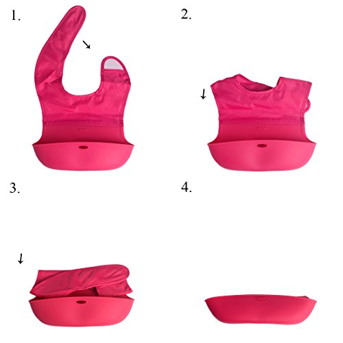 Andux Space ベイビー シリコンビブ 防水 お食事用 4ヵ月~3歳 WD-01 (ローズレッド)