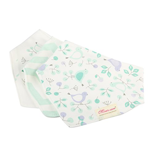 Andux Space ベビー 三角 コットン よだれかけ 3枚組セット YESJJ-01 (Green Bird)