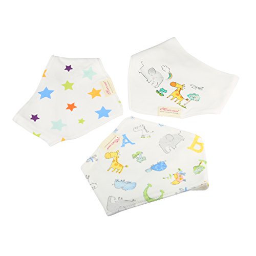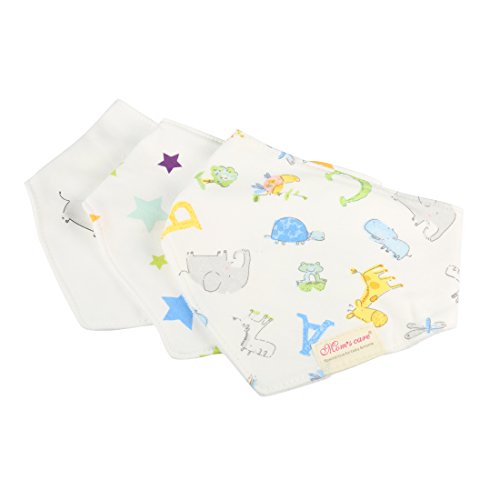 Andux Space ベビー 三角 コットン よだれかけ 3枚組セット YESJJ-01 (Giraffe and Elephant)