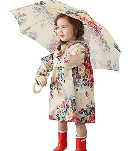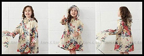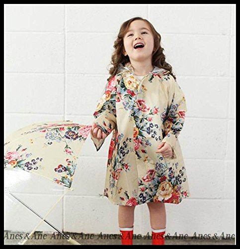 Anes&Ane baby 入園 入学 準備に お洒落 キッズ の必需品 フラワー レインコート 女の子 ポンチョ 収納 袋 セット 通学 通園 (S, クリーム)