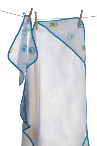 - Angel Dear Hooded Towel and Washcloth, Blue Owl
