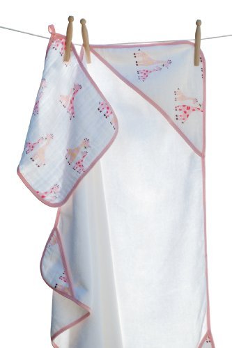 • Angel Dear Hooded Towel and Washcloth, Pink Giraffe by Angel Dear