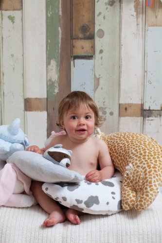 1 unit of Angel Dear Curved Pillow 17x6x4;1 unit Ring Rattle 5x4x1;100% Polyester microfiber;Machine washable to make laundry time easier;Perfect newborn gift
