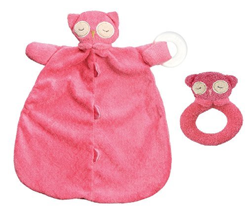 Angel Dear Fuchsia Red Owl Baby Teether Blanket and Ring Rattleギフトセット。