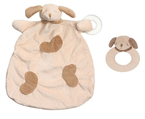 Angel Dear Puppy Baby Teether Blanket and Ring Rattleギフトセット。