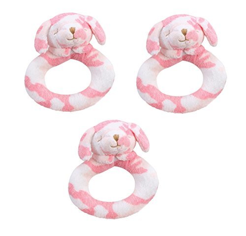 Angel Dear 3個リングRattlesセット、ピンクカモ子犬