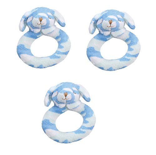 Angel Dear 3個リングRattlesセット、ブルーカモ子犬