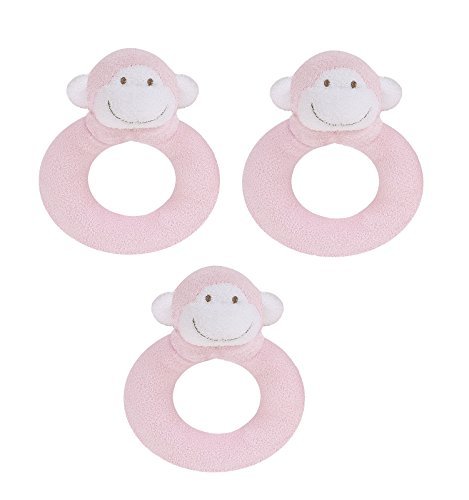 Angel Dear 3個リングRattlesセット、ピンクMonkey