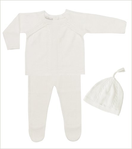 Angel Dearニュートラルベビーケーブルセーターセットギフト衣装新生児Take Me Home、アイボリー カラー: ホワイト