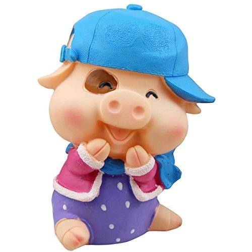 キュートブルー帽子マクダル豚型貯金箱ウェディングXmasクリスマス誕生日バレンタインギフト