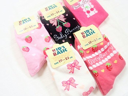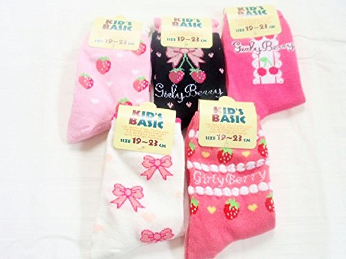 ( Angel Kids ) ラブリー 女児 ジュニア 5足 セット 靴下 クルー丈 ピンク 女の子 (19~23㎝A) …