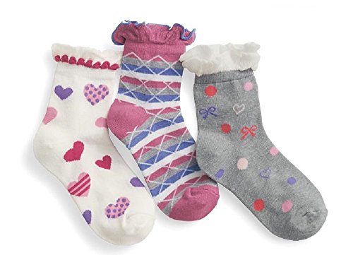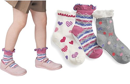 【 Angel Kids 】 女の子 靴下 ハート 水玉 リボン 柄 ジュニア 3足 セット フリル (15-19㎝)