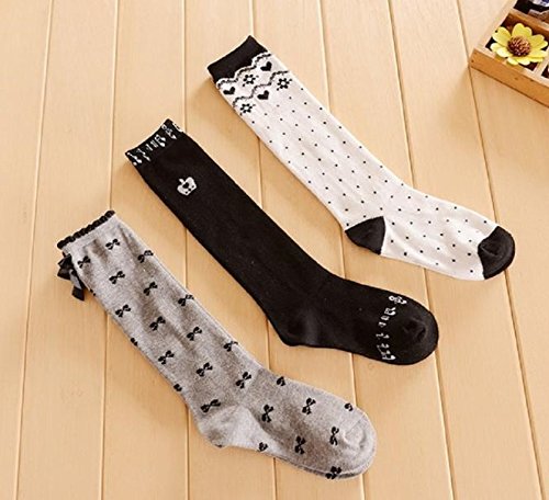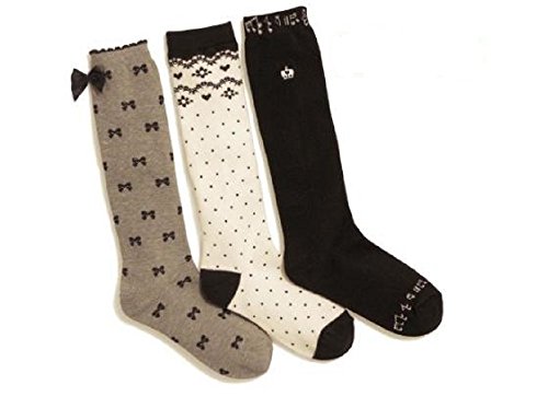 ( Angel Kids ) ガーリー ハイソックス 3足セット 女児 ジュニア 靴下 リボン ボーダー 女の子 (デザインB★19~23㎝) …