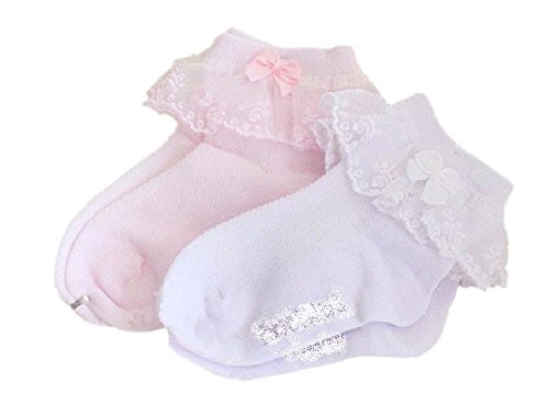 - フリルレース使いの可愛い靴下です。ピンクと白の2色セットです。