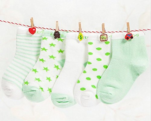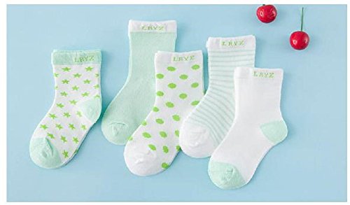 ( Angel Kids ) ベビー ソックス キッズ 靴下 5足 セット コットン 水玉 星模様 やわらか 素材 (0-1歳, ライトグリーン) …
