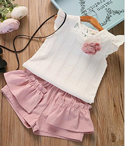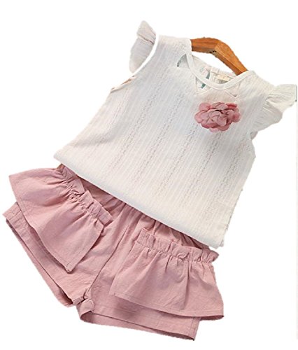 ( AngelKids ) 透かし レース 模様 Tシャツ カットソー & フリル パンツ セットアップ ベビー キッズ 90㎝ ~ 120㎝ (100㎝, モーブピンク) ……