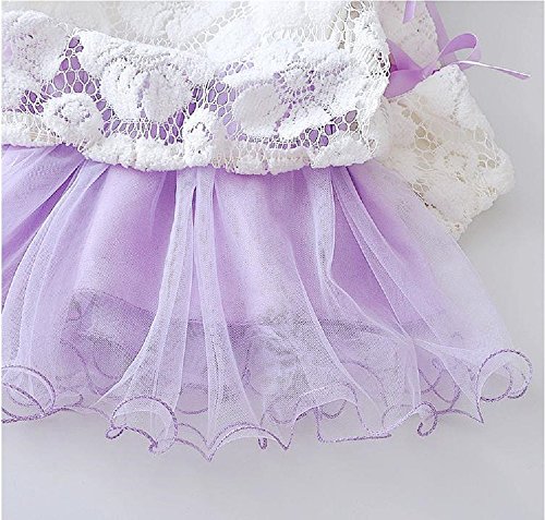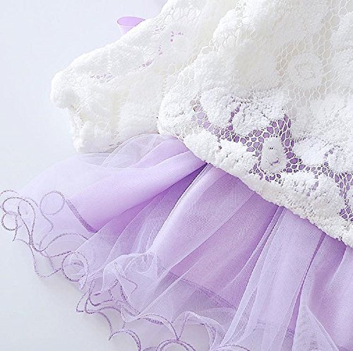 ( AngelKids ) リボン カットソー レース スカート セットアップ 女児 キッズ 発表会 お出かけ ワンピース (100, パープル)