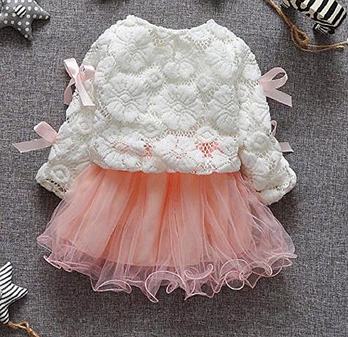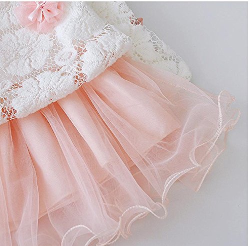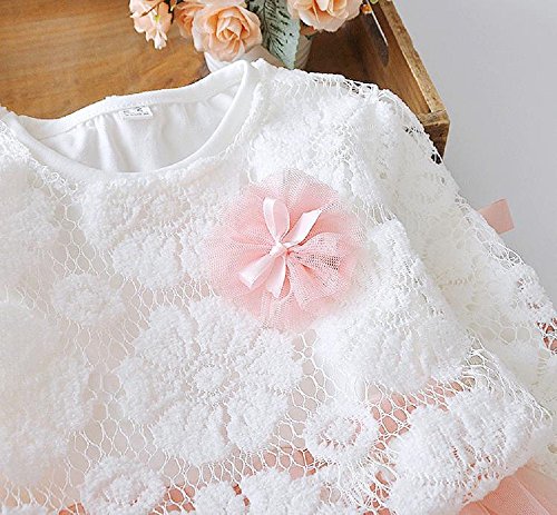 ( AngelKids ) リボン カットソー レース スカート セットアップ 女児 キッズ 発表会 お出かけ ワンピース (100, ピンク) …