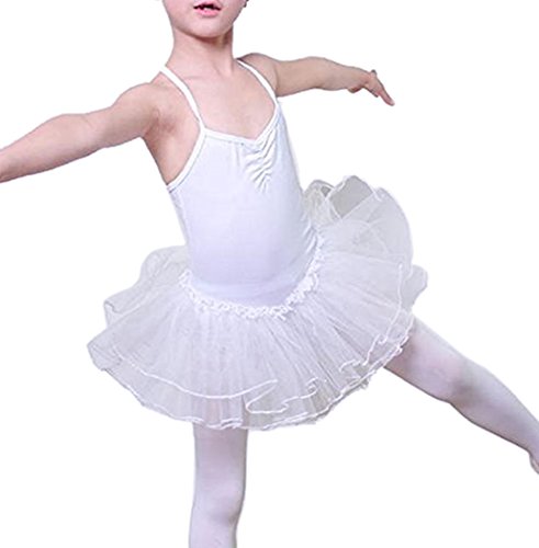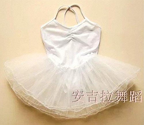 ( Angel Kids ) バレエ 練習用 レオタード 衣装 キッズ ジュニア サイズ レース チュチュ フリル ダンス (ホワイト, 120㎝) …