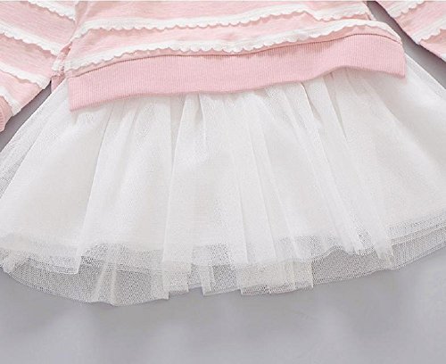 ( AngelKids ) ベビー キッズ ドッキング ボーダー 長袖 ワンピース レース スカート 80㎝ 90㎝ 100㎝ (80, ピンク)