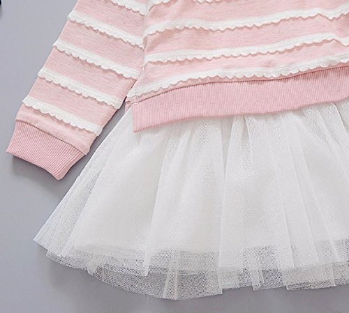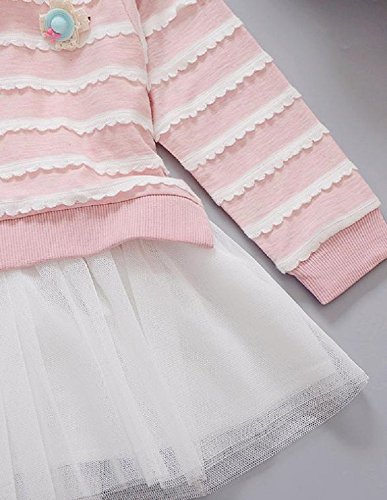 ( AngelKids ) ベビー キッズ ドッキング ボーダー 長袖 ワンピース レース スカート 80㎝ 90㎝ 100㎝ (100, ピンク)