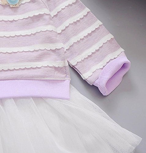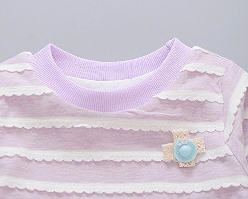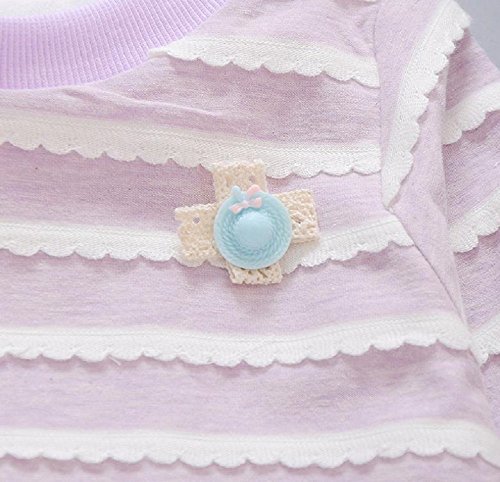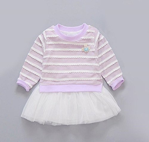 ( AngelKids ) ベビー キッズ ドッキング ボーダー 長袖 ワンピース レース スカート 80㎝ 90㎝ 100㎝ (90, パープル)