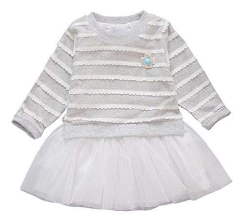 ( AngelKids ) ベビー キッズ ドッキング ボーダー 長袖 ワンピース レース スカート 80㎝ 90㎝ 100㎝ (90, グレー)