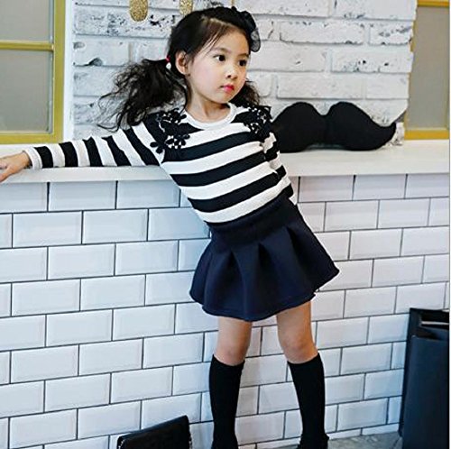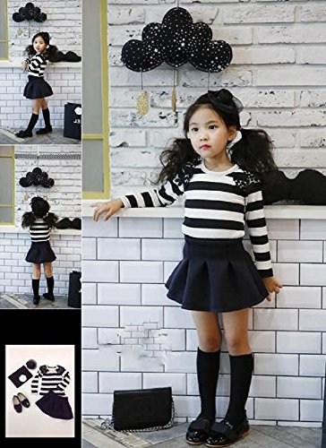 ( AngelKids ) ボーダー 長袖 カットソー & スカート セット アップ キッズ 女児 スタイル 95㎝ 100㎝ 110㎝ 120㎝ 130㎝ (120㎝)