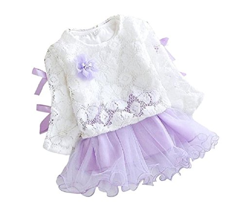 ( AngelKids ) ベビー キッズ リボン カットソー レース スカート セットアップ 女児 お出かけ ワンピース 90㎝ 100㎝ … (110㎝, パープル)