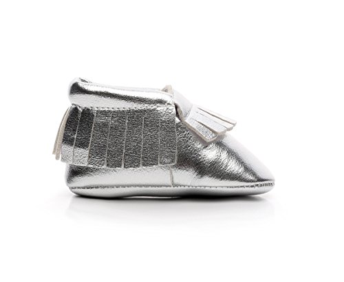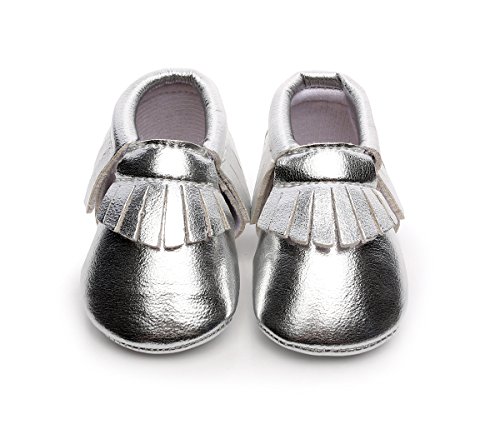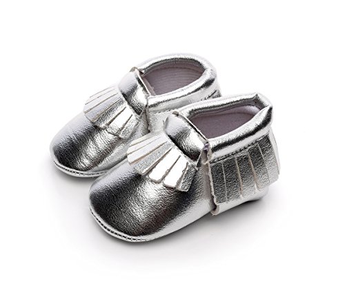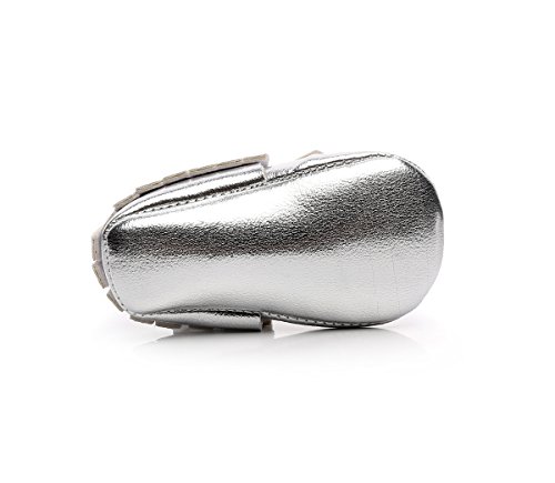 AngelaKerry 幼児の赤ちゃん 春秋タッセル PU ファーストシューズ ベビー靴 13CM(12-18月) 明るいシルバー [並行輸入品]