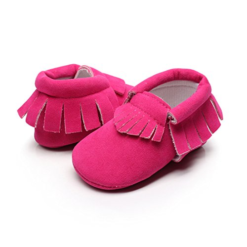 AngelaKerry 幼児の赤ちゃん 春秋タッセル ファーストシューズ ベビー靴 スクラブ シューズ 12CM(6-12月) ローズレッド [並行輸入品]