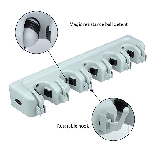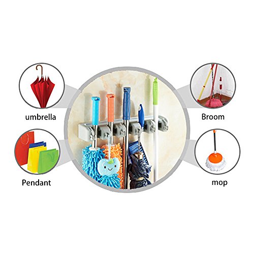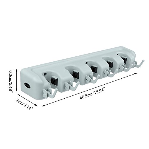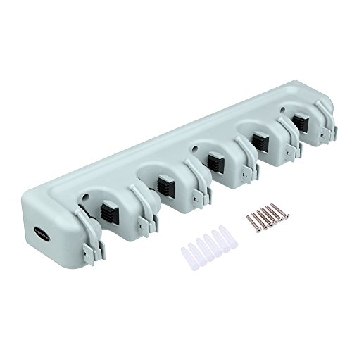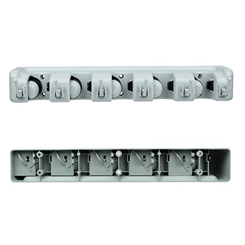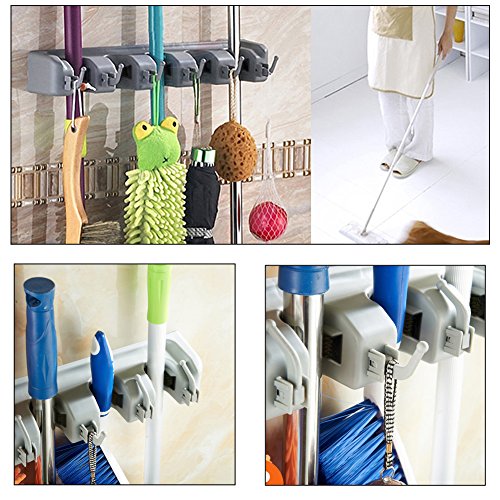 Angelbubbles モップホルダー ホウキ収納 ほうきホルダー 多機能 壁掛け フック付 清掃用具 タオル 5位6鈎 螺丝付き (グレー)