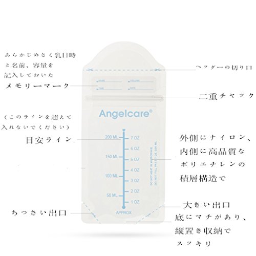 Angelcare 母乳フリーザー パック 200ml 50枚入 縦置き保存もOK 母乳バッグ