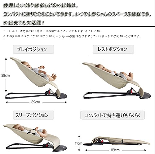 - ロッキングチェア(ゆりかご)/おひるねベッド/ベビーシートの3通りに使用できる