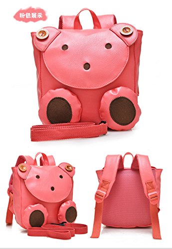 幼児用バッグ 迷子紐付き 子供 赤ちゃん おでかけ お散歩 旅行 リュックサック かっこいいクマ型 (ピンク)