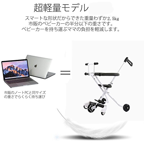 Angelcare 新型 携帯型 ベビーカー 子供折りたたみ式 トロッコ 簡易 三輪車 児童折り畳み軽量三輪車の 軽便児童車 乗用玩具 (ホワイト)