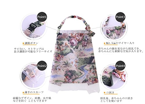 上質 授乳ケープ 薄手のスカーフ 授乳服 ポンチョ 調節ヒモ 授乳カバー ワイヤー入り コットン100% お出かけ 多機能 オシャレ 北欧の町 花柄 ママ 収納袋付き 夏用