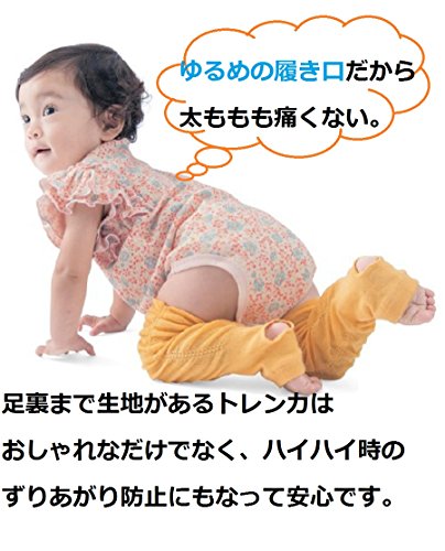 - 足裏まで生地があるトレンカはおしゃれなだけでなく、ハイハイ時のずりあがり防止にもなって安心です。ゆるめの履き口でベビーのムッチリした太ももも締めつけません。