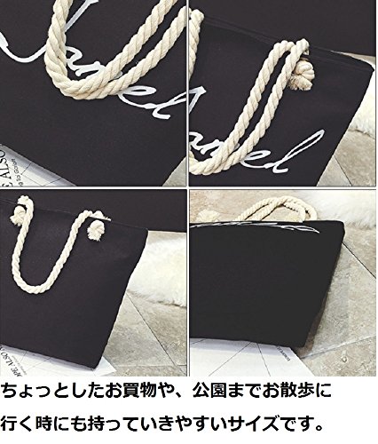 - 【サイズ】バッグのサイズ: タテ33cmxヨコ(上)38cm(下)30cmxマチ11cm/持ち手の長さ50cm 【メイン素材】キャンバス生地/ロープ 【カラー】 ブラック/ホワイト