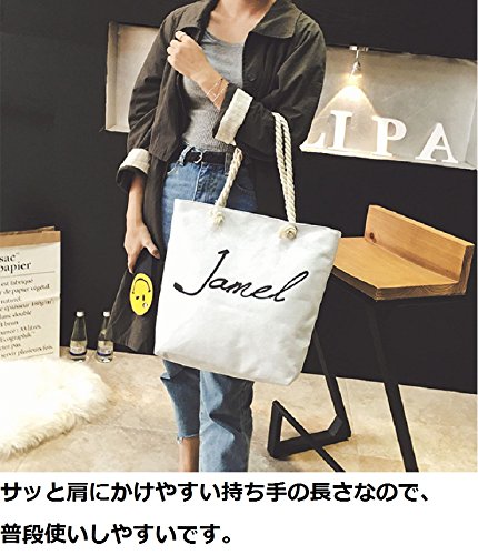 【Angelicate】大容量 ロープ ハンドル トートバッグ 帆布 キャンパス地 通学 マザーズバッグにも (ホワイト)