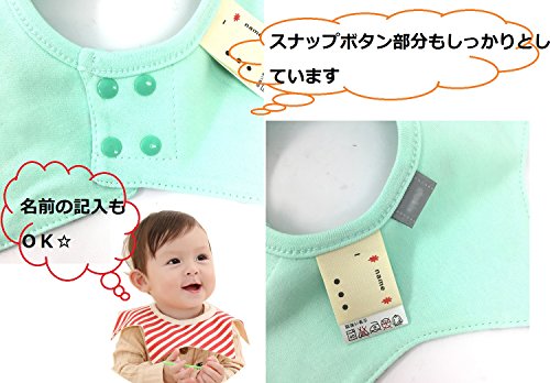 - 素材:表地:綿 内側生地:防水機能PVEA 肌に触れる表地は、優しい綿素材を使用。内側には薄い防水生地を挟み込んでいるので、お洋服に染みるのを防ぎます。また、よだれや飲みこぼしの浸透を防いでくれるので、よだれが多い時期の赤ちゃんも安心して身につけることができます。