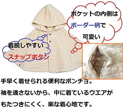 - ソフトな肌ざわりで暖かいニットキルトのベビー用ポンチョタイプアウターです。キルト地なので肌触りもとてもいいです。