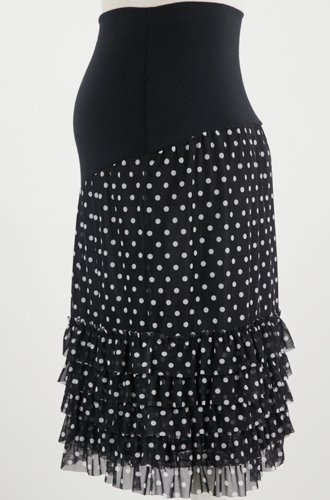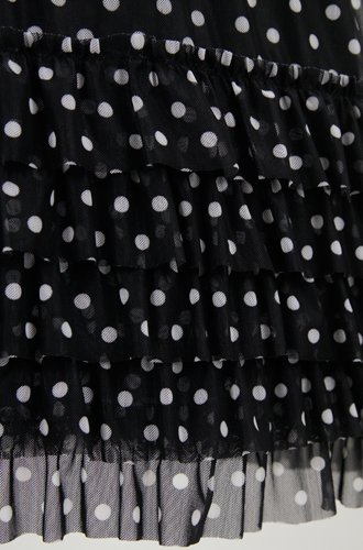 大人可愛い着こなしに欠かせないドット柄スカート。目の細かいチュールネット素材ならではの伸縮性で、はき心地はとても楽。