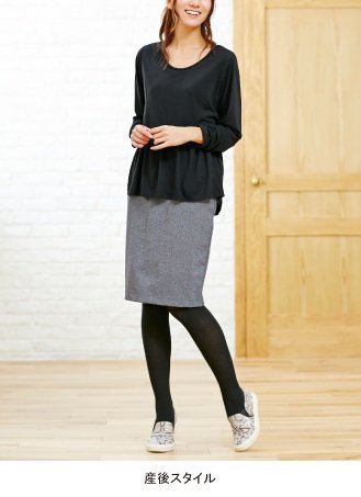 - ●素材/ブラック=レーヨン70%、ナイロン(ストレッチ糸入り)30% 杢グレー=レーヨン60%、ポリエステル35%、ポリウレタン5% お腹部分(編みたてリブニット【フィット】)=綿43%、ポリエステル43%、ナイロン13%、ポリウレタン1%