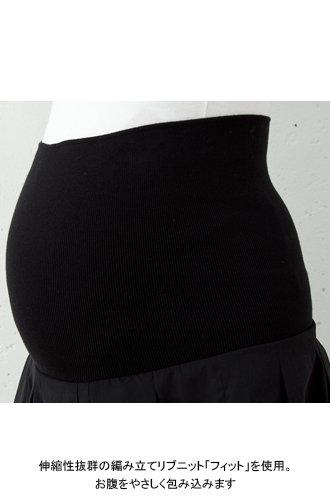 ウエスト部分はオリジナルの編み立てリブ「フィット」を使用しているので、産前から産後まで長く愛用頂けます。