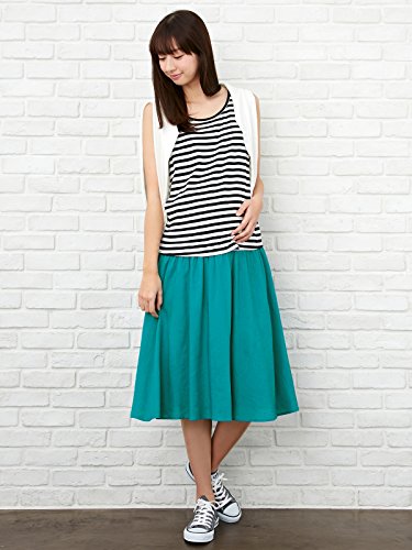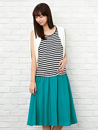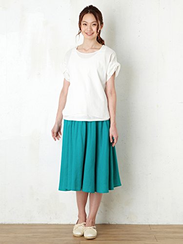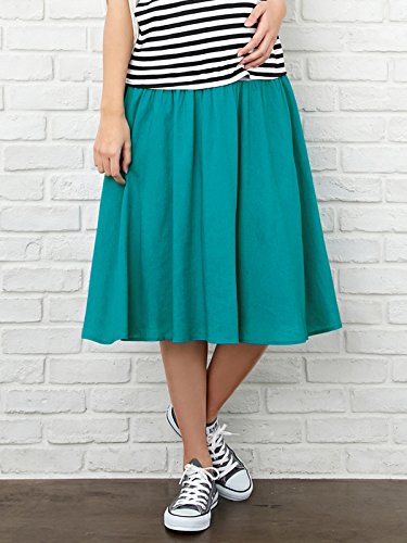 Angeliebe エンジェリーベ マタニティ レーヨン リネン ギャザー フレア ミモレ スカート 産前 産後 対応 妊婦服 アジャスター調節可 フリー ターコイズ 20853 20853300