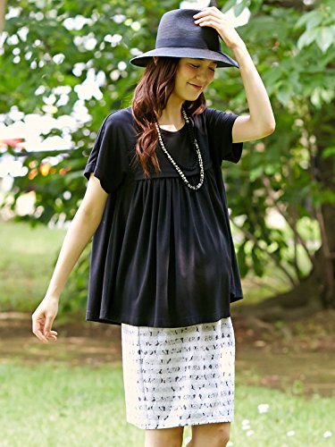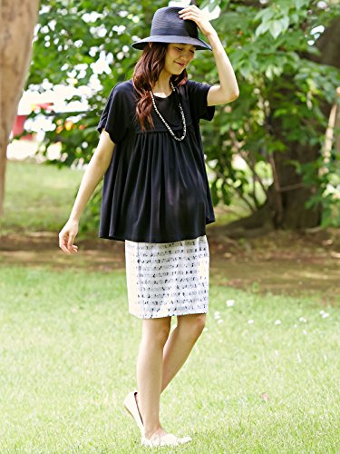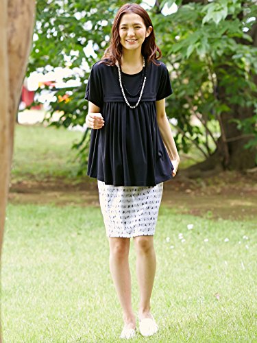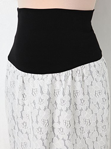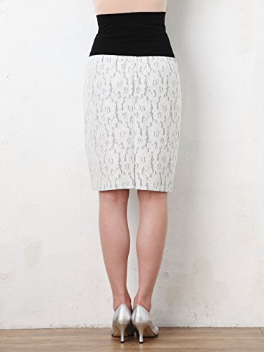 Angeliebe エンジェリーベ マタニティ 産前 産後 対応 接結 レース タイト スカート 妊婦服 通勤 S ~ M ブラック × オフ
