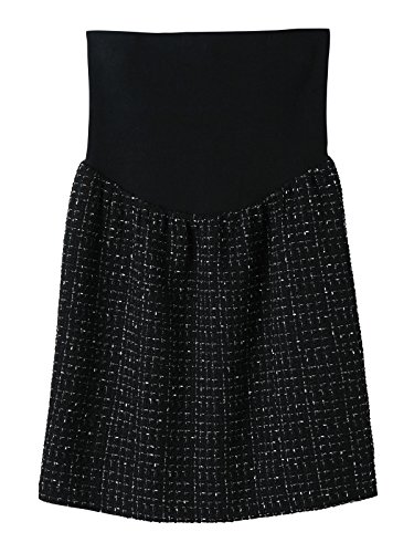 Angeliebe エンジェリーベ 産前 産後 対応 フィット ラメ ツィード タイト スカート 7号 ブラック