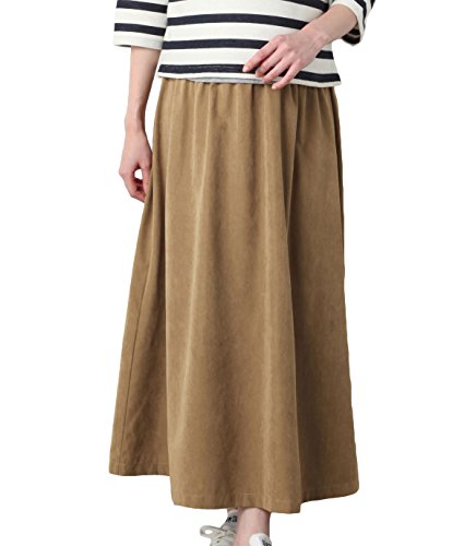 Angeliebe エンジェリーベ マタニティ ライト フェイク スウェード マキシ スカート 産前 産後 対応 妊婦服 フリー キャメル